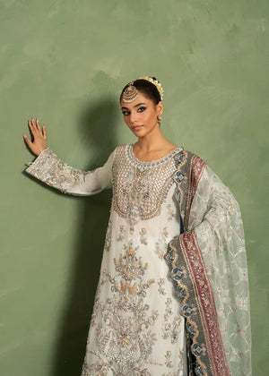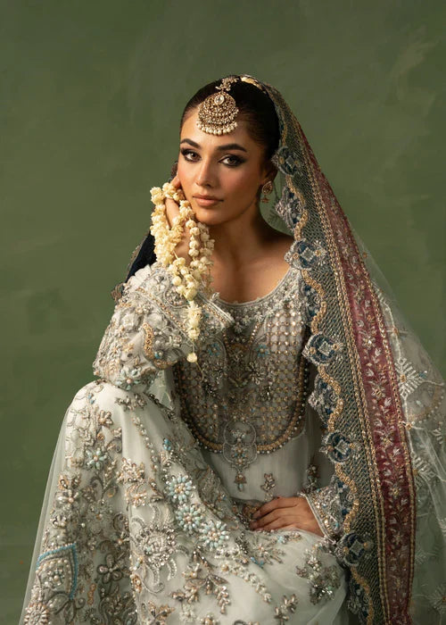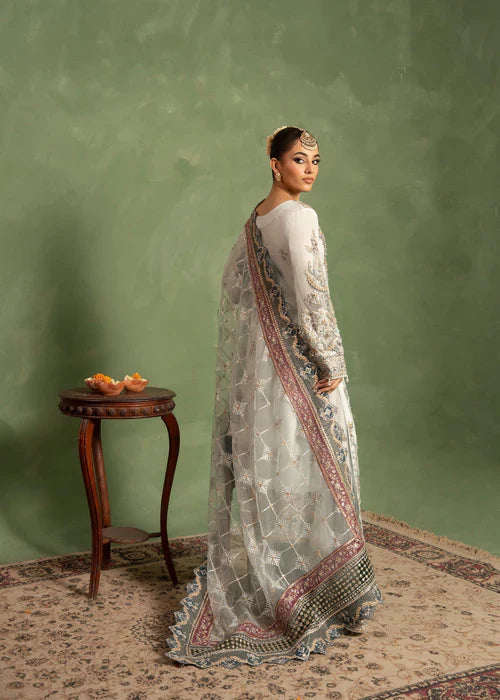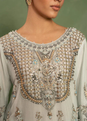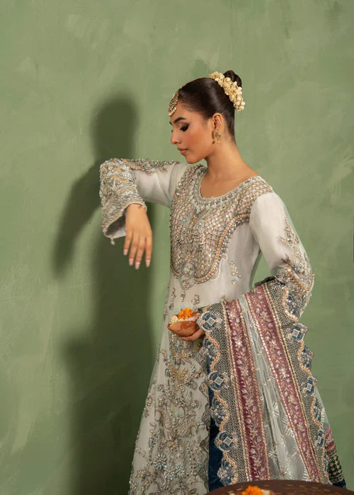 Additional Description: "*Shirt fabric Net *Sharara fabric NET with Viscouse Lining * Dupatta fabric NET (2-2.5M) *Lining viscouse * 3pc stitched suit *Multihead embriodery and handmade aada stone and pearl work on it *Trouzer with embriodered border *Embriodered dubbata on net and four sided organza border with embiodery."
