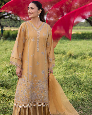 Beautifully tailored cotton panel shararah, elegantly designed with intricate lace detailing