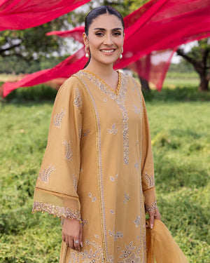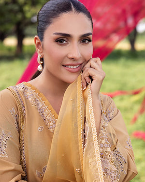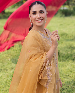 Organza dupatta crafted with enchanting embroidery, adorned with sequin laces, and highlighted with floral applique motifs