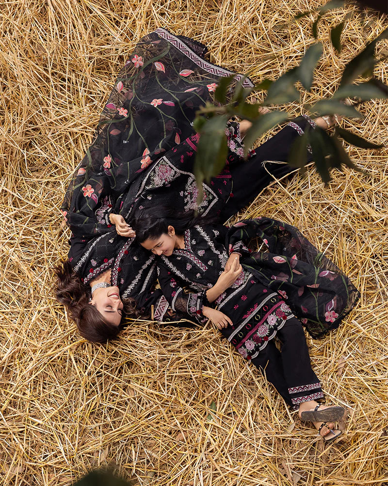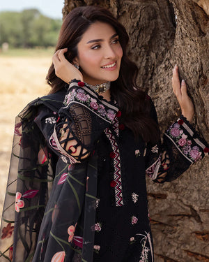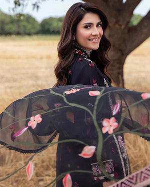 Organza dupatta crafted with enchanting embroidery, adorned with sequin laces, and highlighted with floral applique motifs