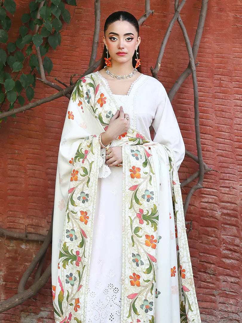 Luxury with our wool shawl, featuring stunning dual-side digital printing and a touch of elegance with pearl accents.