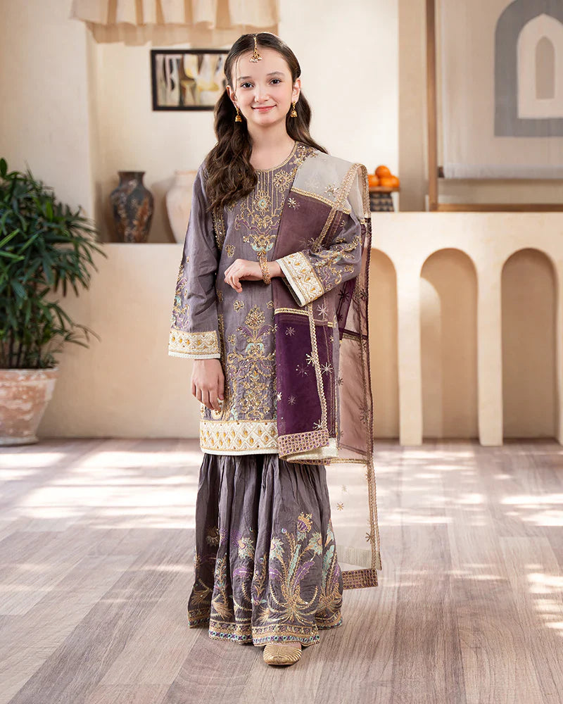 3-Silk ghararah, which is also beautifully crafted with sequins embroidery, tilla thread work, and pearls.
