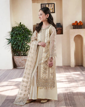 2-With matching organza dupatta is elegantly embellished with sequins embroidery, tilla thread, and delicate lace
