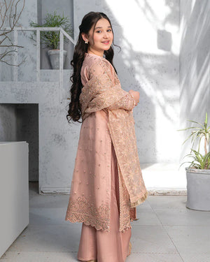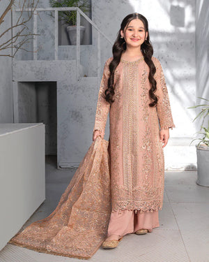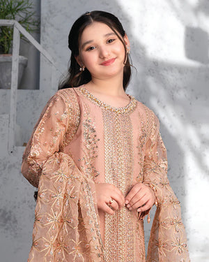 | Organza shirt adorned with sequins, embroidery, tilla thread, pearls, and crystals. Organza dupatta is elegantly embellished with sequins embroidery, tilla thread, and delicate lace Complete the look with the viscose panel plazo |