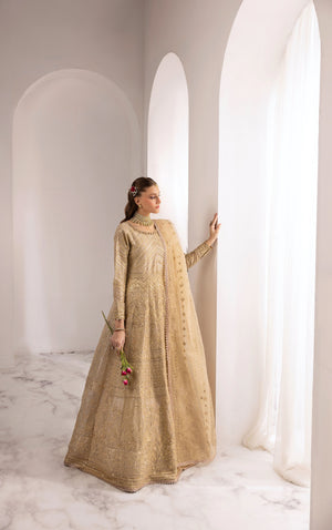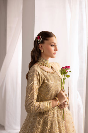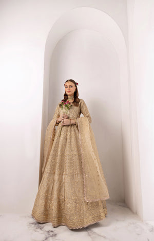 1-Introducing the exquisite Zari Masoori Net Embroidered Maxi, featuring handcrafted adda work on the neckline and embellished with matching pearls for a touch of elegance