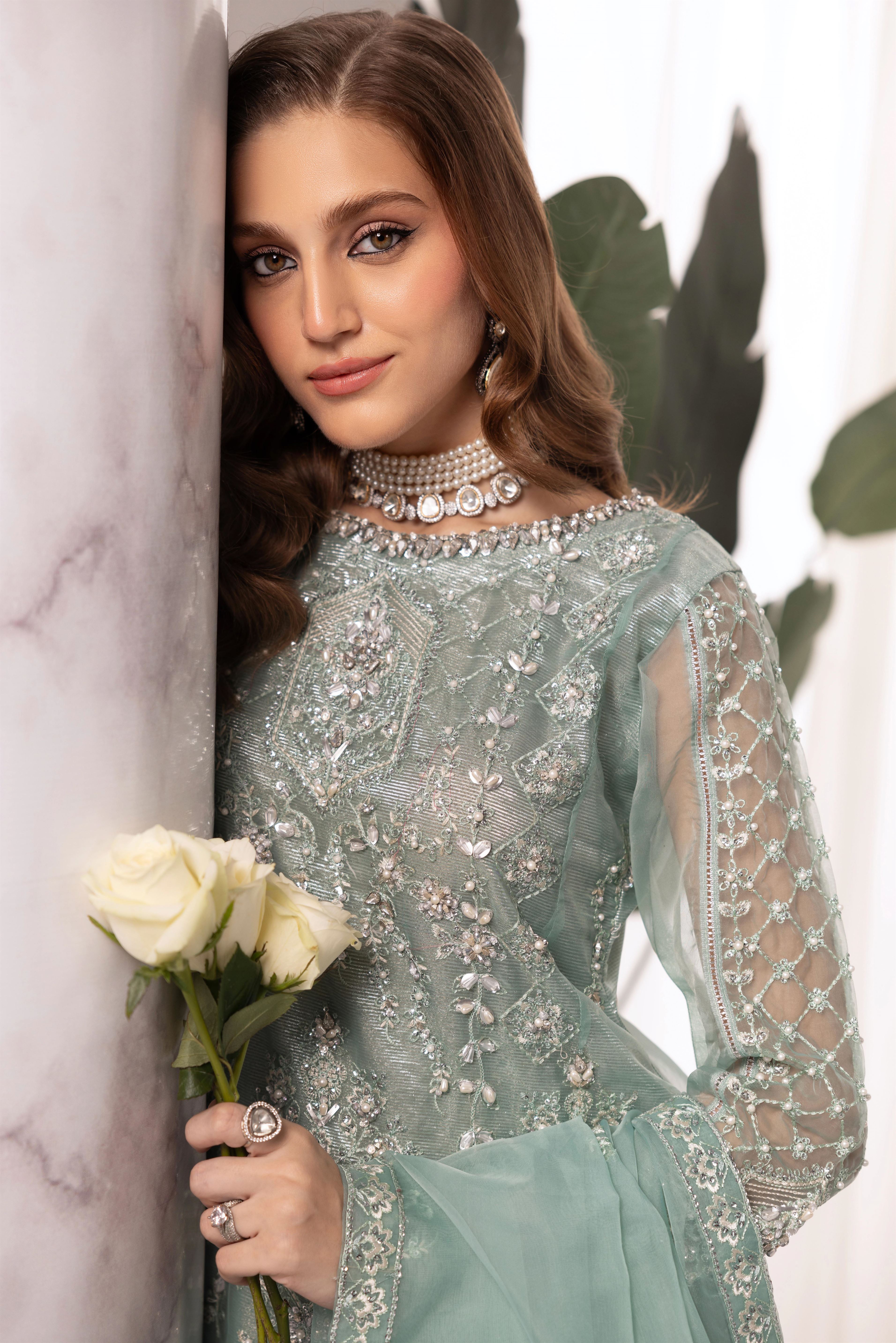 2-Complete the look with our organza sequin embroidered dupatta featuring pearls on the border