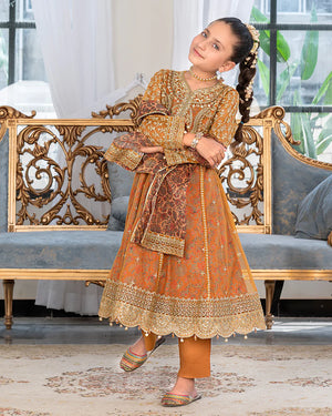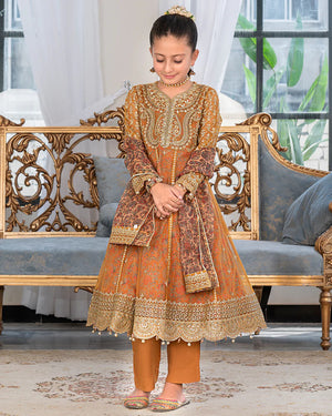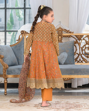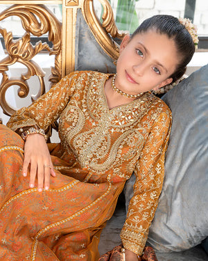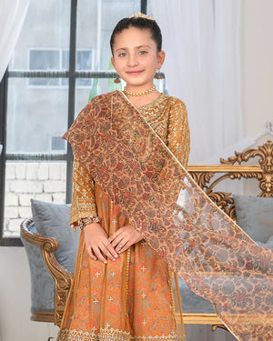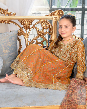 Stunning net frock adorned with sequin embroidery, diamantes, gotta patti work, and tassels