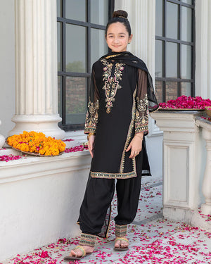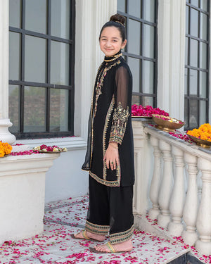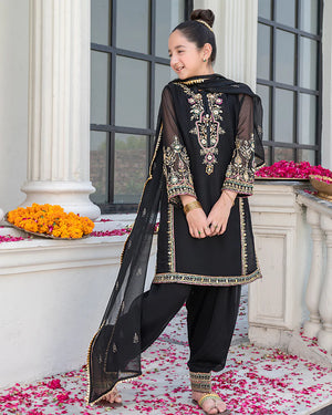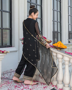 Chiffon farshi shalwar embellished with shimmering sequins embroidery.