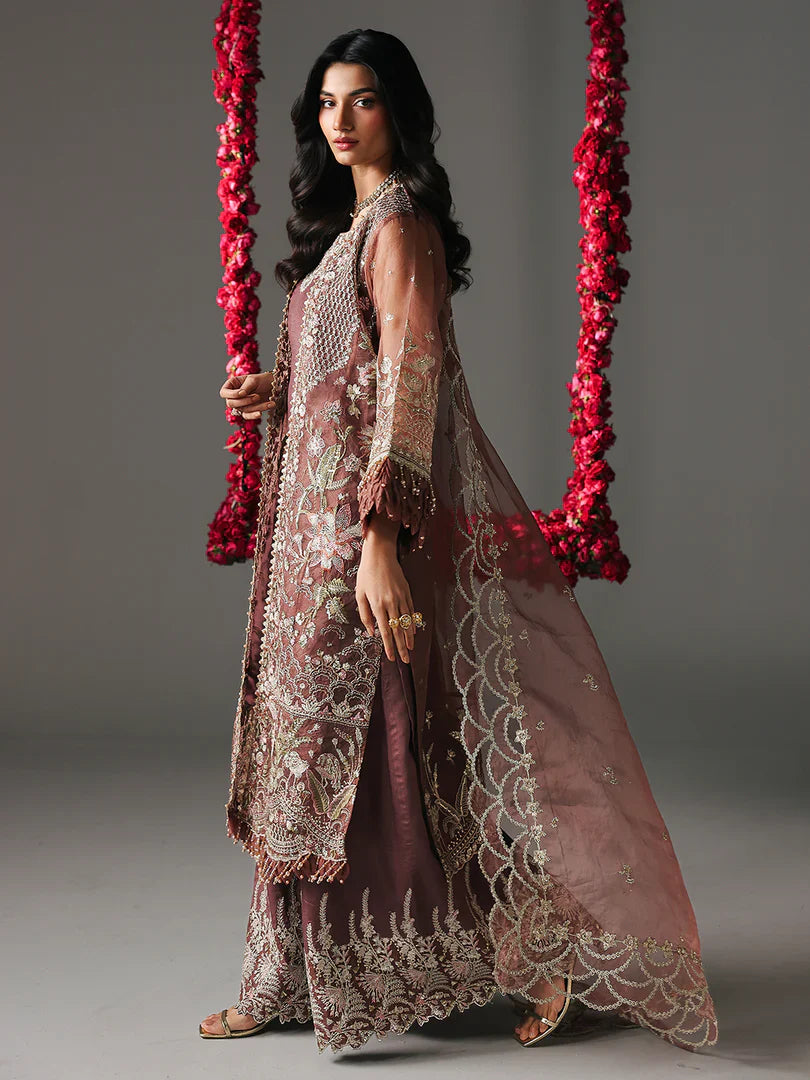 Organza dupatta is adorned with spangle embroidery along its scalloped borders