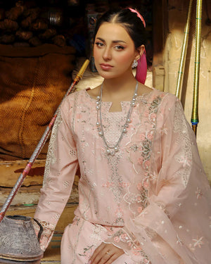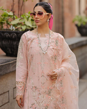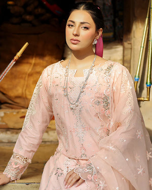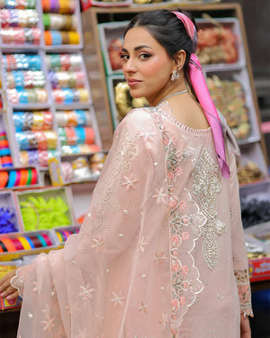 | Stunning cotton chikankari shirt! It is expertly crafted with intricate embroidery, organza patches, and eye-catching crystal tassels Organza dupatta features beautiful multi-thread and scalloped borders Cotton palazzo pants are adorned with elegant pearls embellishments.  |