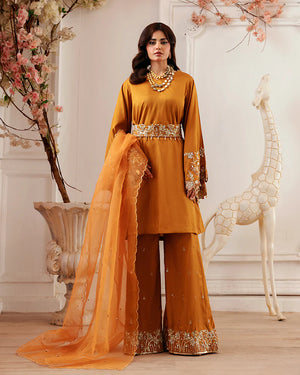 Raw Silk ensemble, meticulously crafted with sequin embroidery, pearls, stones, and crystal embellishments.