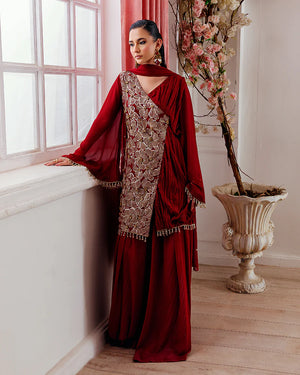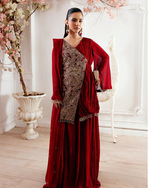 Raw silk shirt meticulously crafted with intricate chainwork, dazzling sequin embroidery, and sparkling cutdana crystals.