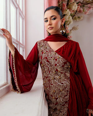 Organza dupatta adorned with shimmering diamantes and delicate pearl embellishments.