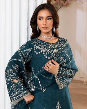 Raw silk shirt adorned with intricate embroidery, pearls, crystals, sequins, 3D embellishments, and chain work.