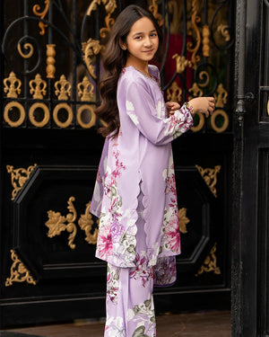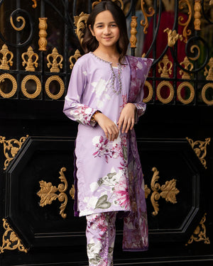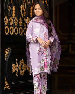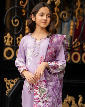 | Grip Silk Digital Print Shirt adorned with opal stone crystals and pearls embellishments Organza Digital Printed Dupatta Grip Silk Digital Print Trouser |