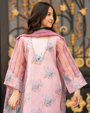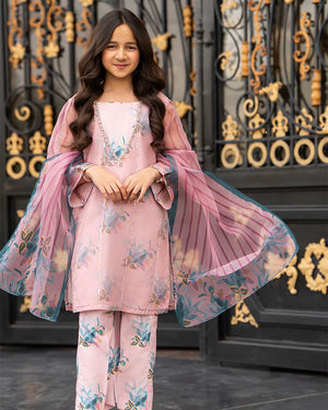 Organza shirt, meticulously crafted with chainwork crystal and diamond spinel detailing, complete with a stunning grip silk digital printed lining