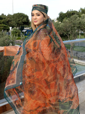 Digital print organza dupatta, a whisper of luxury that drapes with grace.