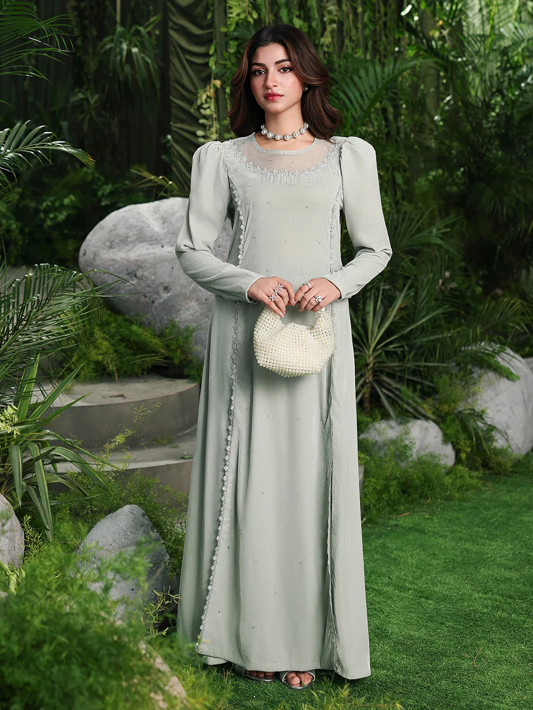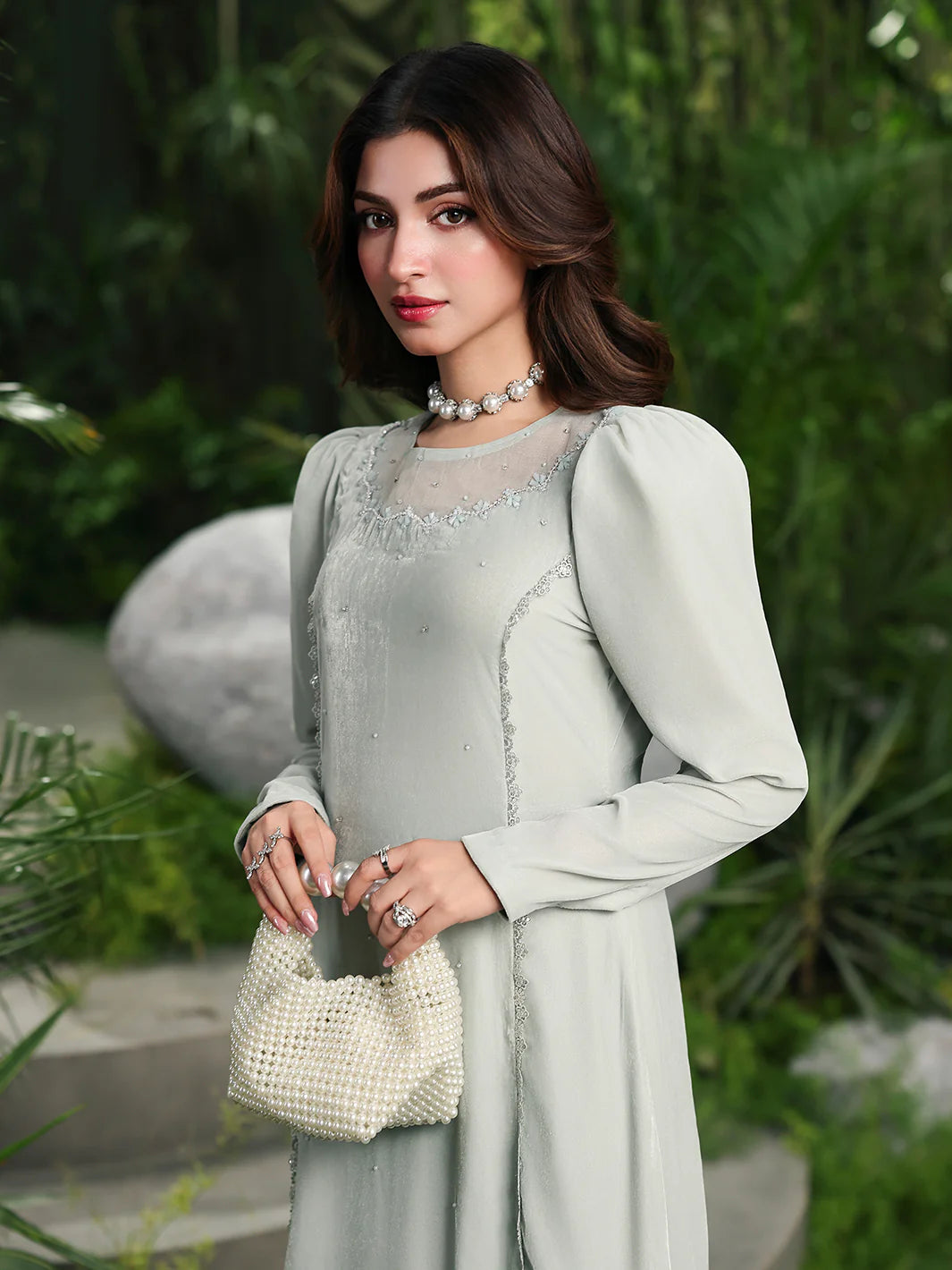Luxurious 9000-micron velvet featuring intricate sequin embroidery, adorned with stones, pearls, and cutdana detailing