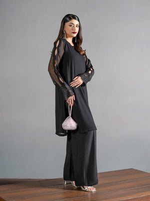 Chiffon shirt masterfully crafted with intricate sequin embroidery hand crafted adda work shimmering stones pealrs and cutwork boarders