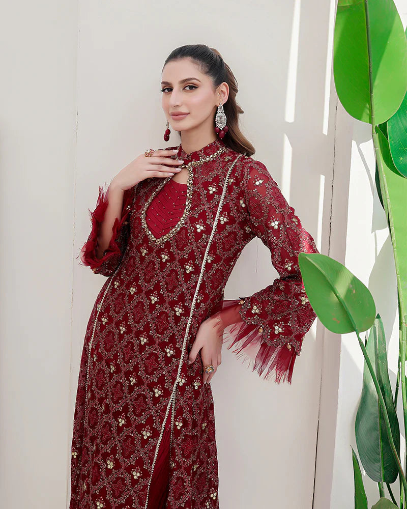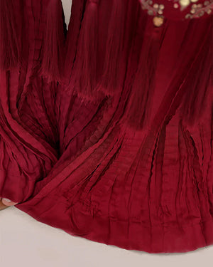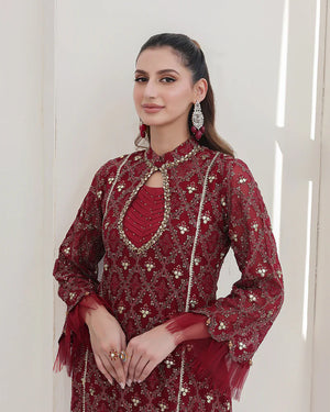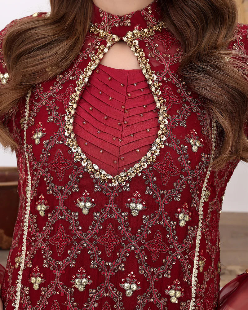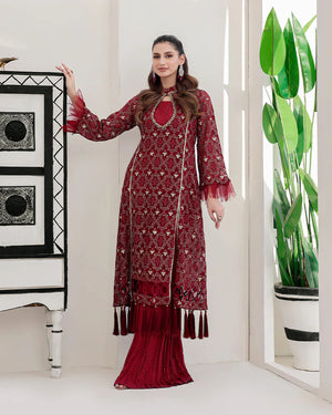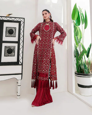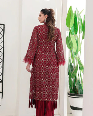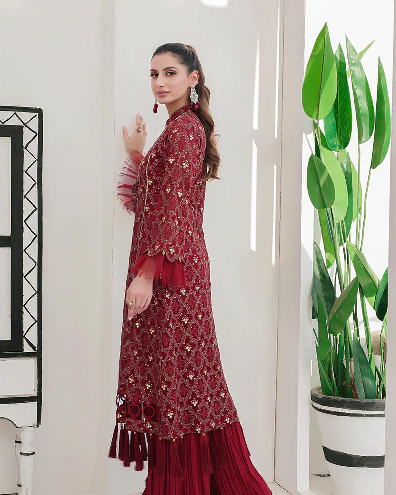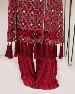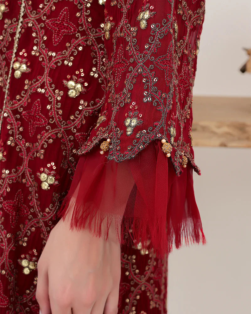 Stunning chiffon sequin embroidered shirt, featuring handcrafted embellishments on the neckline and playful tassels on the borders