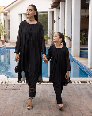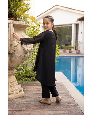 Chiffon back trail shirt, adorned with meticulously handcrafted adda work and stunning matching pearls embellishments on the sleeves and shirt bottom