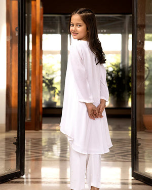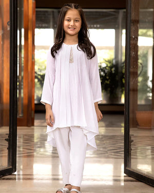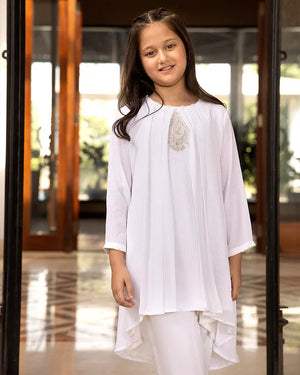Chiffon back trail shirt, adorned with meticulously handcrafted adda work and stunning matching pearls embellishments on the sleeves and shirt bottom