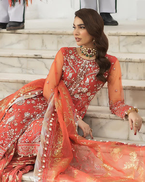 1-Our stunning net front open peplum, a masterpiece meticulously crafted with exquisite naqshi, this garment showcases intricate dabka and zari work