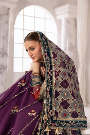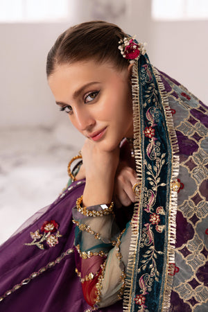 2-The organza cutwork (two coloured) sequin embroidered dupatta features a beautiful velvet fabric border and is elegantly finished with four-sided tassels, adding a regal touch to the overall look.