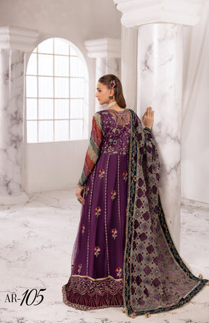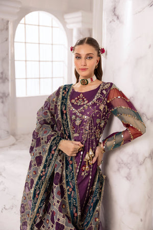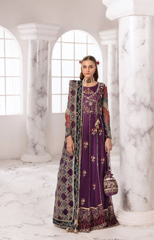 1-Net sequin embroidered Angrakha style maxi, adorned with handcrafted adda and mirror work, as well as delicate pearls embellishment. The stunning velvet maxi bottom fabric adds a touch of luxury to this majestic ensemble.