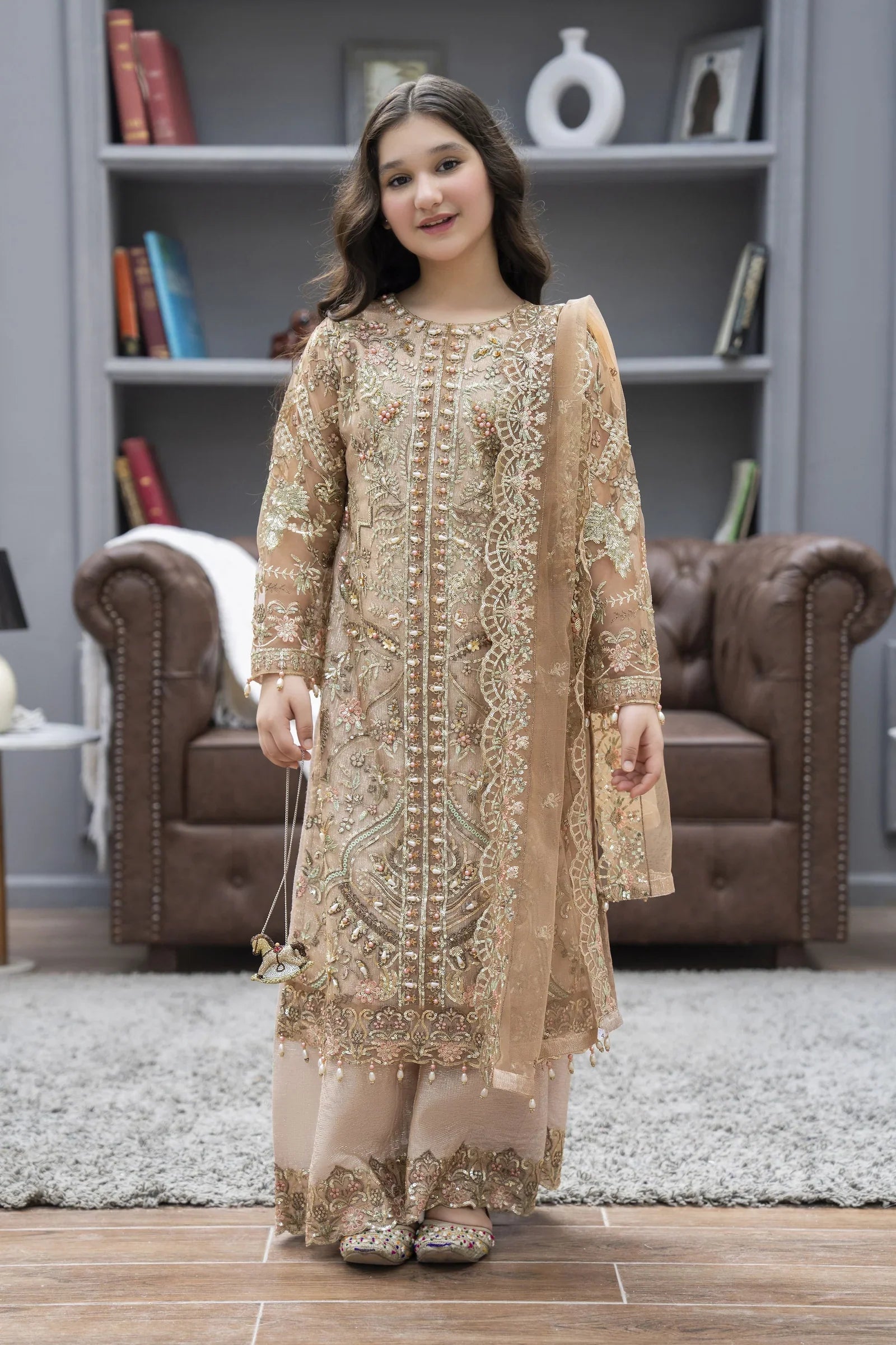 A matching net sequin-embroidered dupatta lends an extra touch of elegance, while the shimmering sequin-embroidered sharara completes this luxurious look. This exquisite outfit is perfect for making a grand entrance and turning heads at any special event.