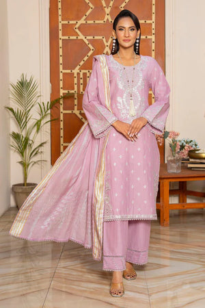 | Chicken Kari Embroidery Neckline, Full Embroidery Front Panel, Plain Back Panel, Full Embroidery Sleeves, Calf Length, Flapper Viscose Lace Trim Trouser |