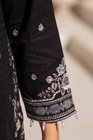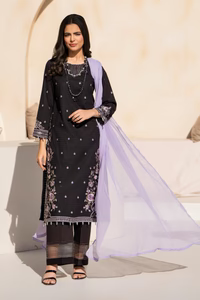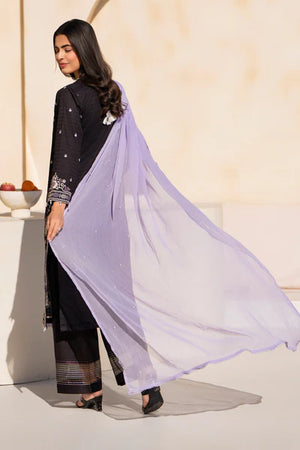 | The black nano kara embroidered shirt from our Spring Pret '25 collection features straight sleeves and full-length sleeves, and it is paired with a dye dupatta. |
