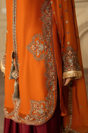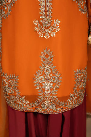 Crinkle Chiffon Shirt with Tilla Work Embroidery and Dori on Neckline