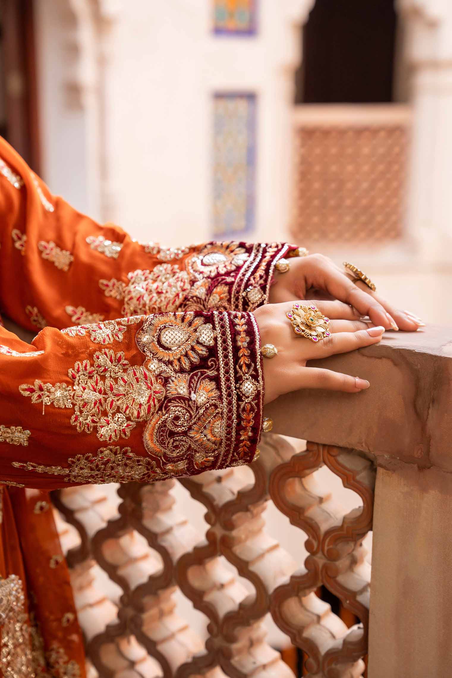 Velvet work on Sleeves and Neckline