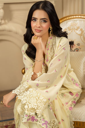 Crinkle Chiffon Dupatta with Cross Stitch Embroidery Lace all over