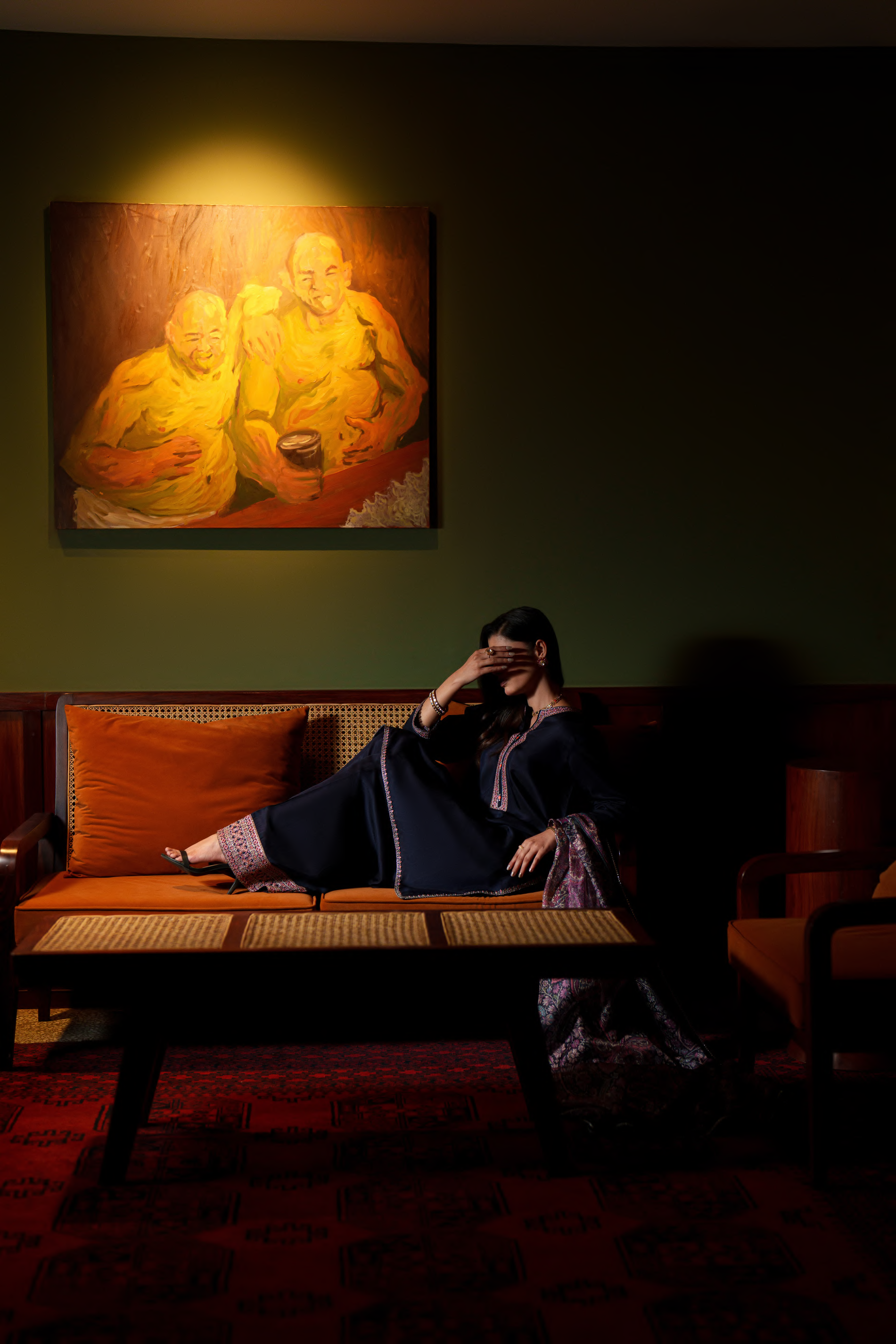 Aurelle Deep Midnight Blue – Intricate Embroidery | Subtle Festive Detailing