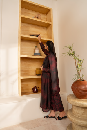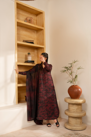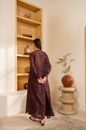Drape yourself in rich, moody elegance with Mulberry Mirage — a deep maroon and black ensemble that makes a powerful statement through its refined simplicity.