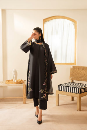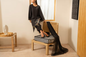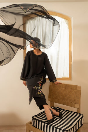 Unveil timeless sophistication with this three-piece outfit in classic black.