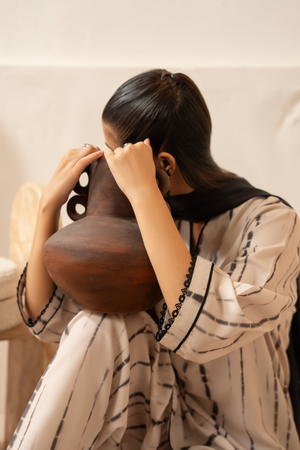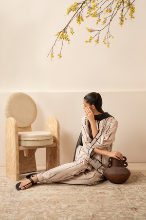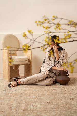 Minimalist yet striking, Noir Lines brings everyday sophistication to life, featuring a clean beige base adorned with bold vertical ink-black streaks.