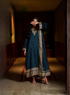 Elevate your festive wardrobe with the Opaline Rich Jewel Tones Ensemble, a celebration of refined tailoring and intricate artistry. Designed in sumptuous jewel tones, this outfit reflects understated luxury with a graceful silhouette that flatters effortlessly.