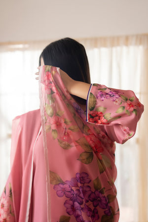 S t e p into a world of blooming elegance with this three-piece
