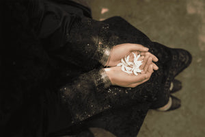 A black embroidered ensemble that beautifully blends quiet luxury with effortless grace. Subtle tonal embellishments lend depth and texture, reflecting light with an aura of understated elegance.
