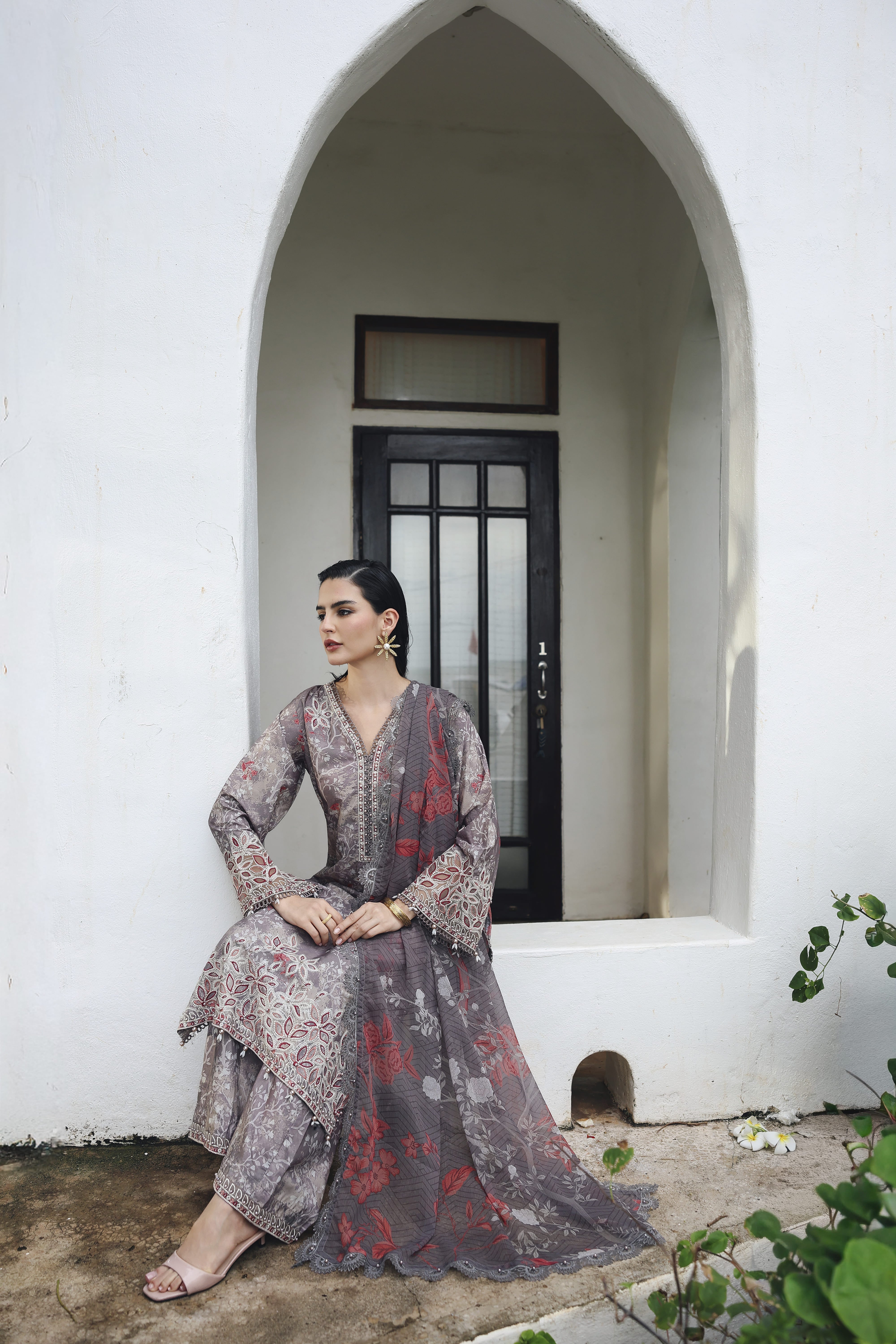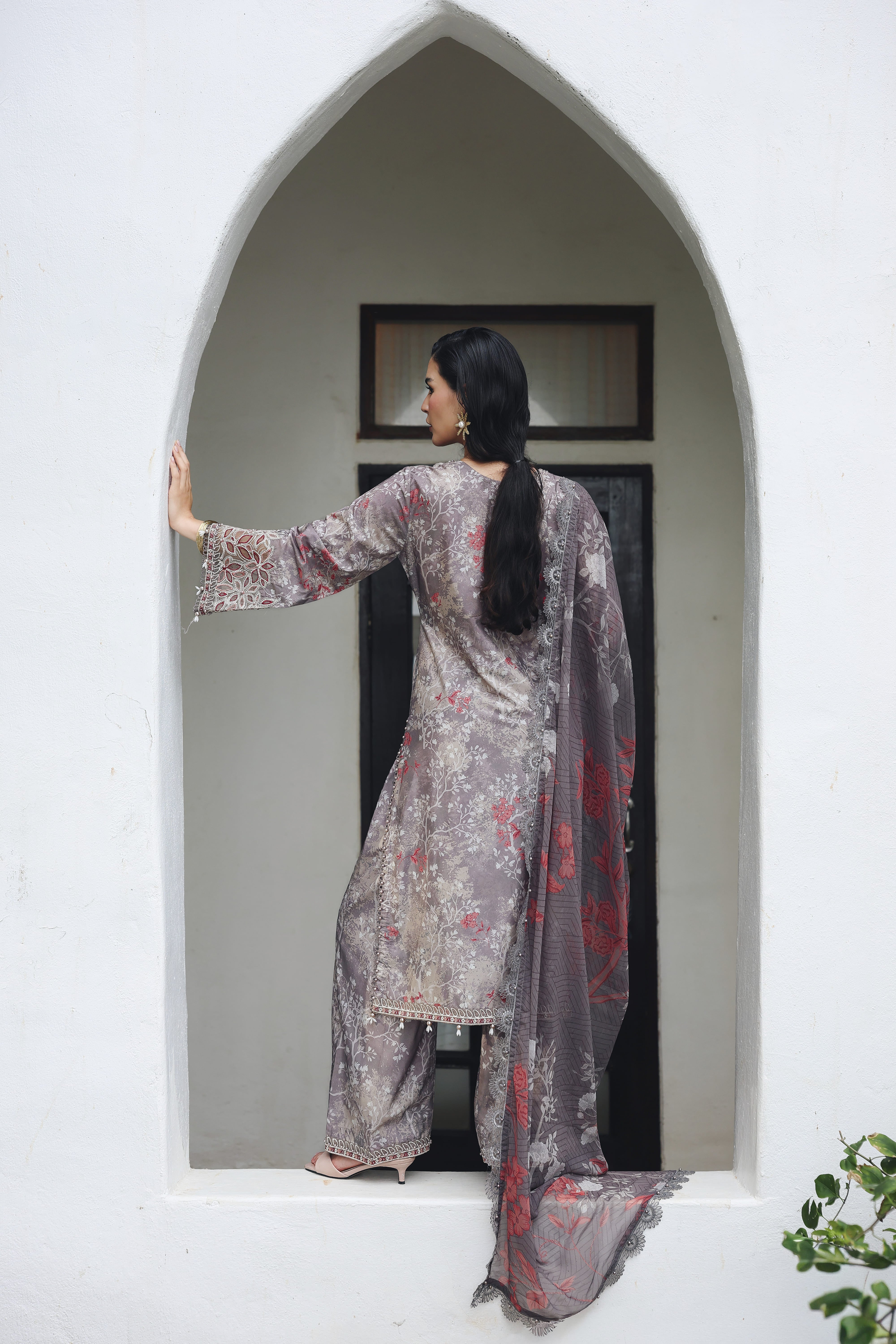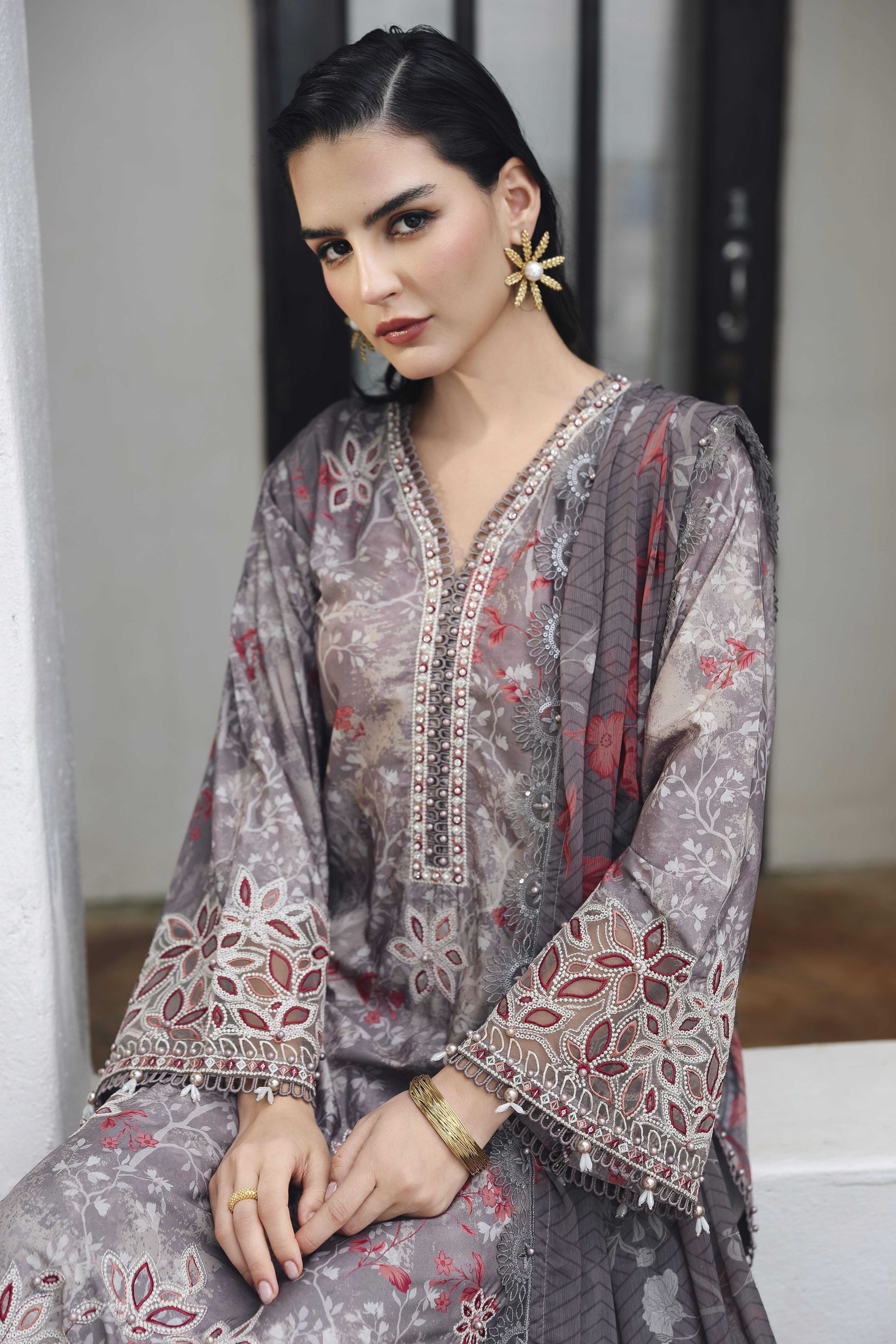 1-premium crepe silk shirt features exquisite sequin embroidery, meticulously crafted with hand-composed adda work, complemented by stones, pearls, and laces