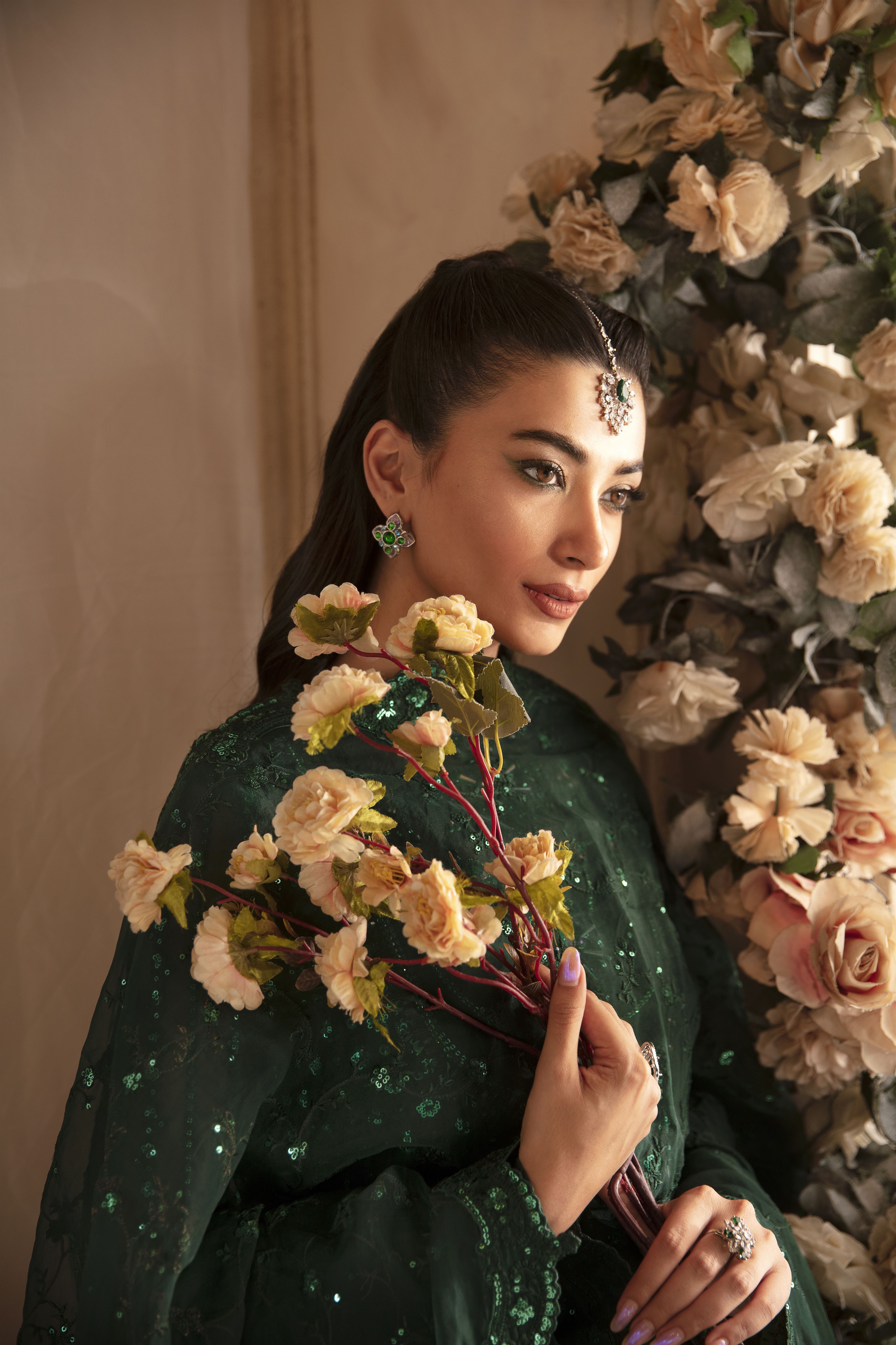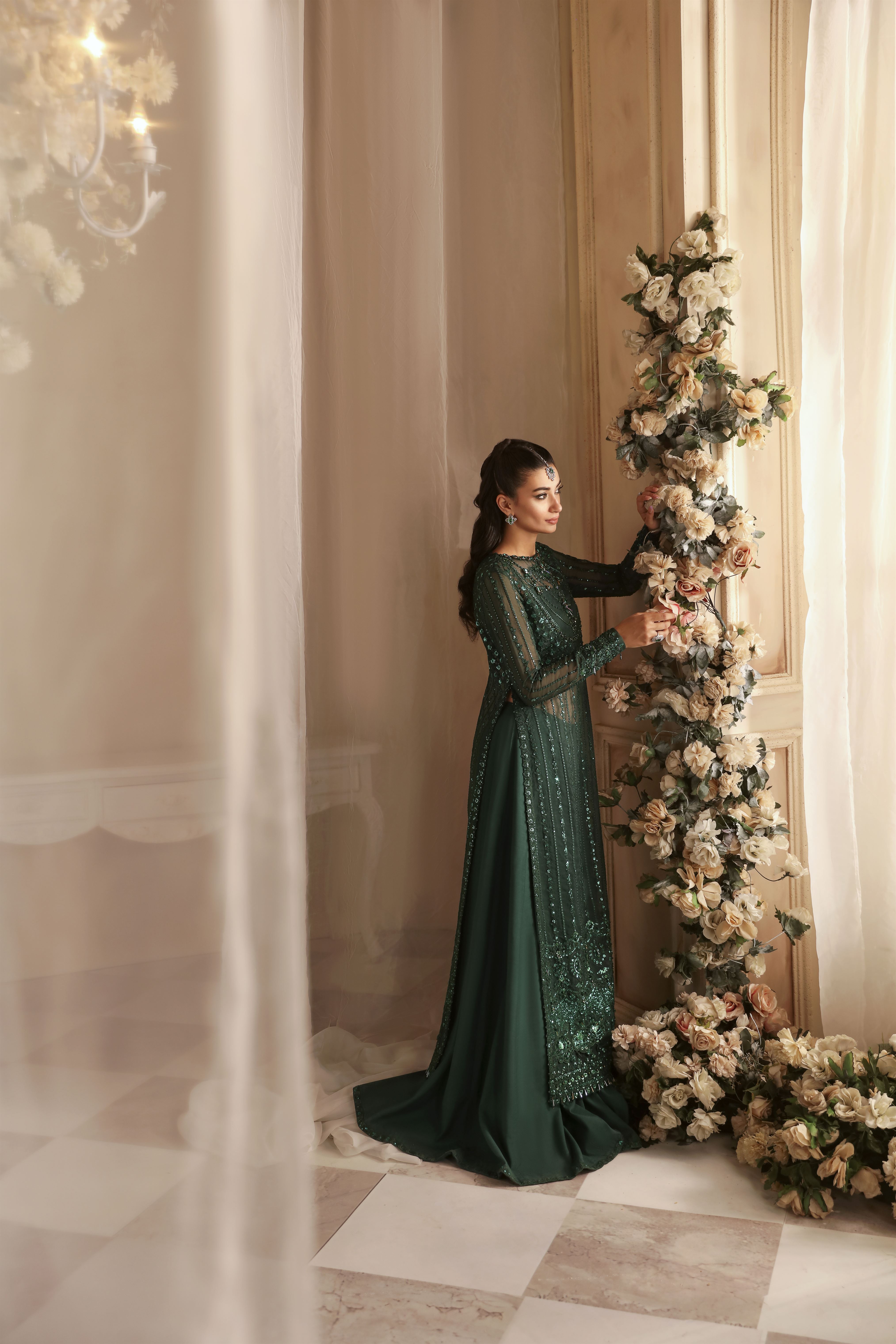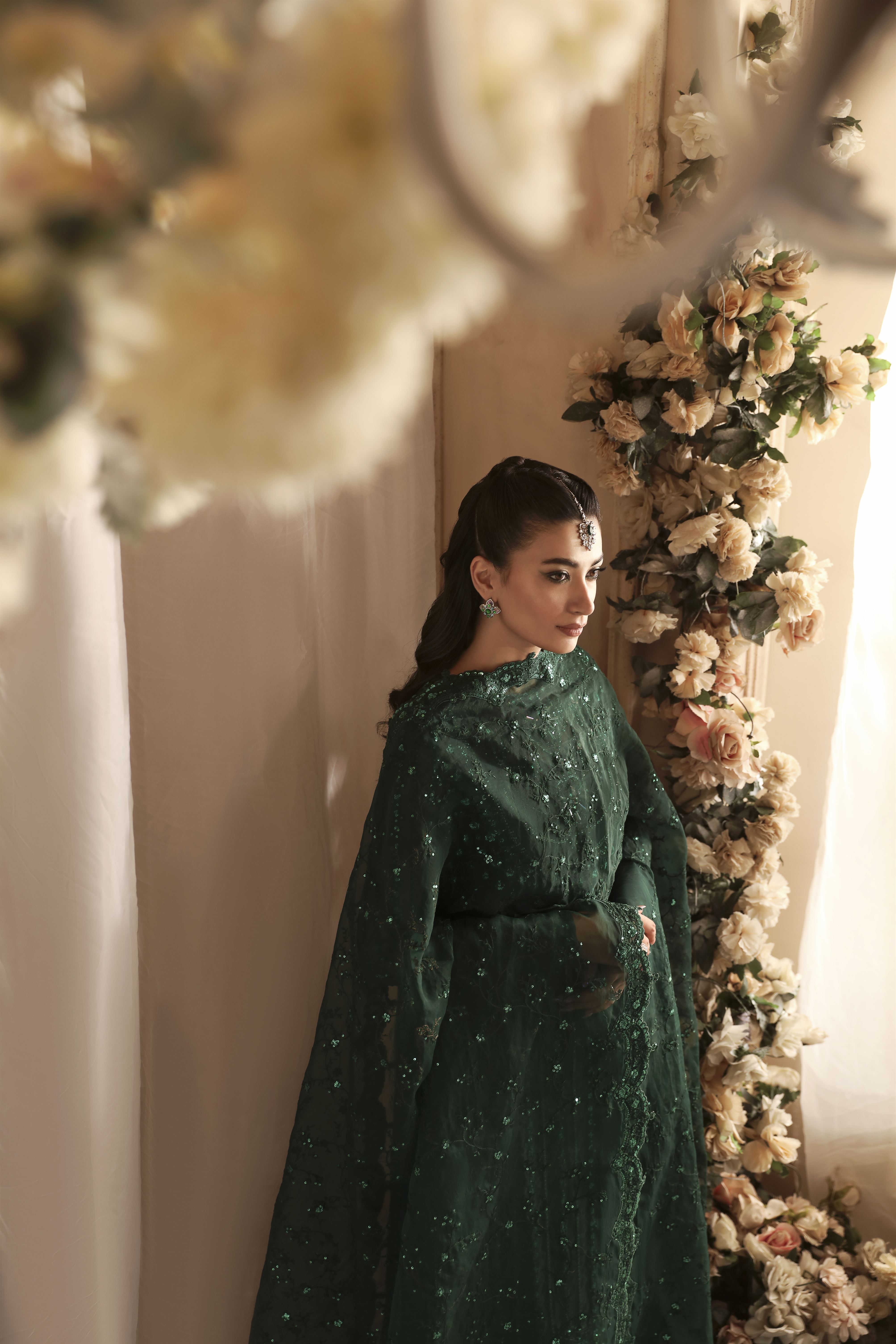 • Organza Embroidered Hand Embellished Sleeve 26"
