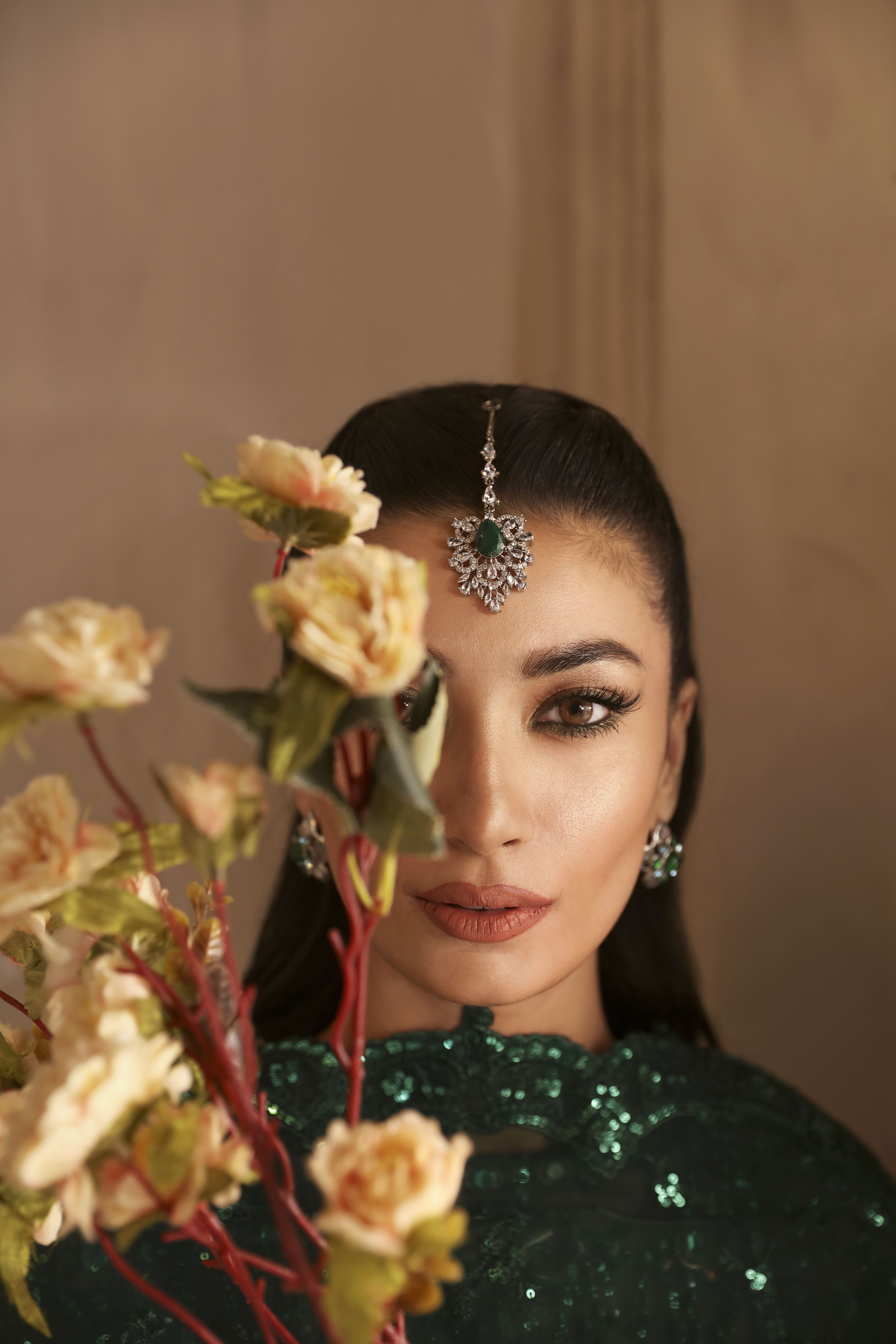 • Organza Embroidered Hand Embellished Front 30"