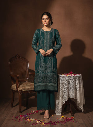 A timeless masterpiece by Sada Bahar, crafted on pure chiffon fabric featuring exquisite thread work, sequins, tilla, and delicate pearl embellishments. The chiffon dupatta mirrors the same intricate craftsmanship, adding a graceful charm to the outfit. Paired with a Russian viscose trouser, this ensemble beautifully blends elegance and sophistication — perfect for any festive or formal occasion.