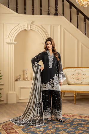 Georgette Chiffon Shirt with Apllique Patches on Neckline, Sleeves