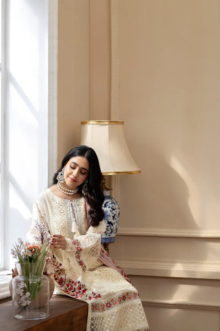 Shirt: Cotton Chikankari Embroidered Shirt with Shuttle Laces and Tilla Dori Neckline