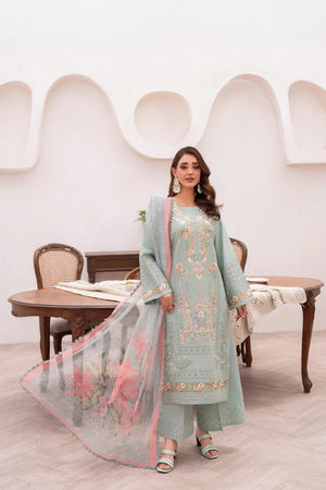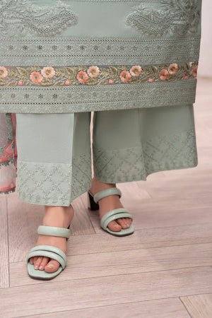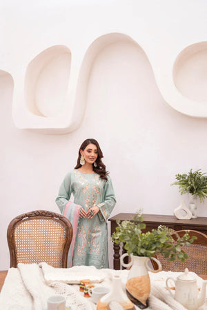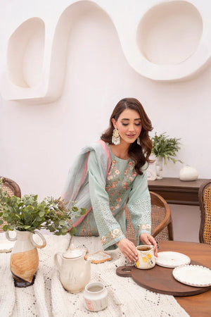 A cool white base meets delicate Chikankari and multicolor embroidery in Sea Breeze, conjuring ocean air and sunlit mornings. The printed Khaadi Monark dupatta with all-over lace adds a soft, sweeping finish. Loose trousers with an embroidered patch complete the breezy ensemble—perfect for summer soirées or daytime celebrations.