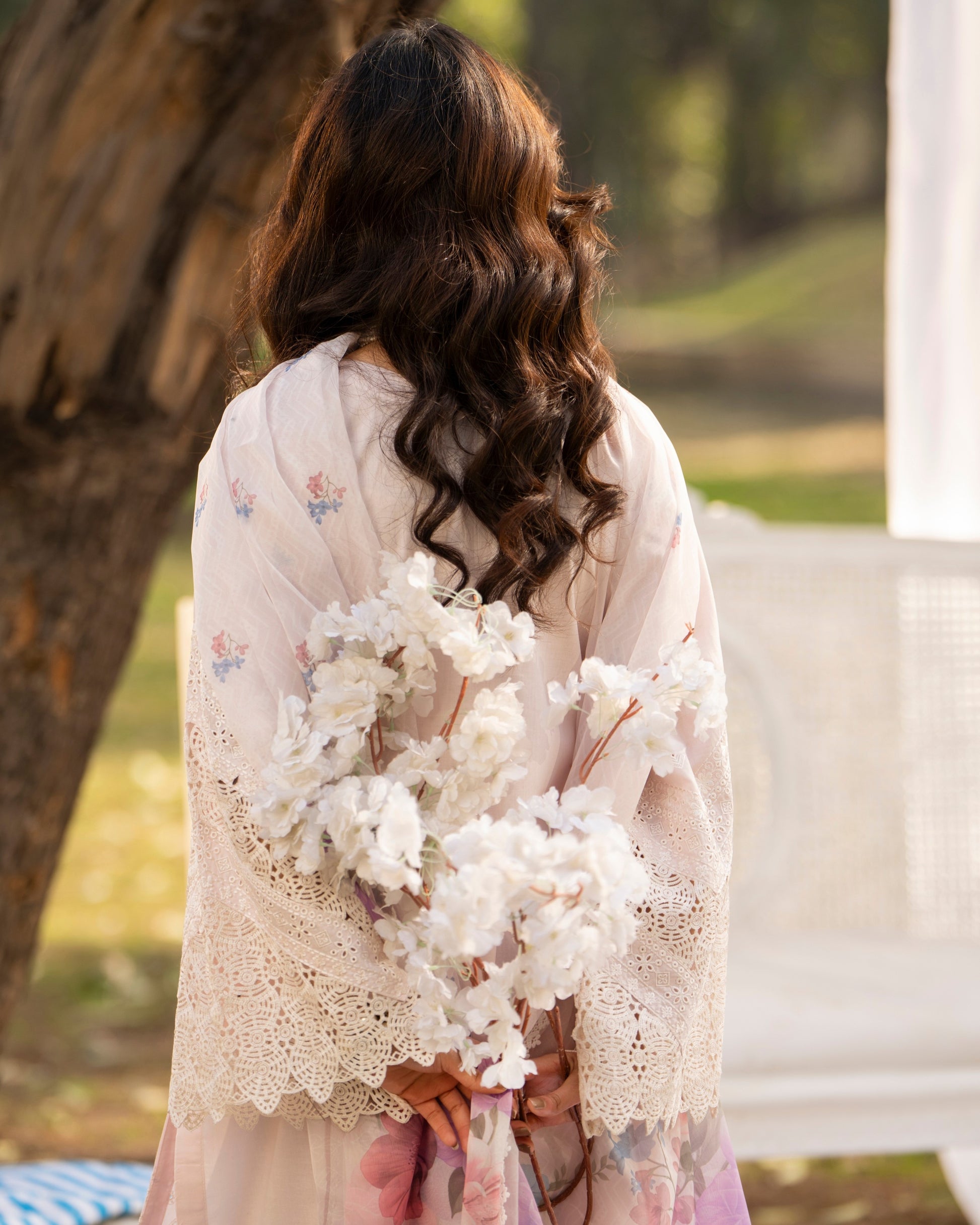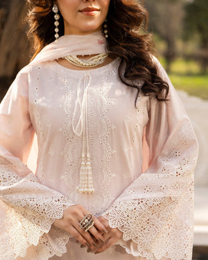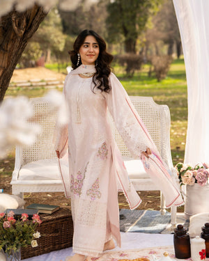 Dupatta: Printed lawn dupatta adorned with lace on all sides, adding softness and visual charm to the outfit.